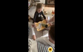 【视频】海沃德左手受伤后在家休养行动不便,可爱女儿为其端茶送水